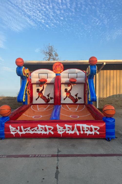 Add high-energy competition to your event with our King of the Court Basketball Challenge inflatable basketball game. This interactive basketball rental is perfect for birthday parties, school events, church functions, corporate events, and backyard parties.